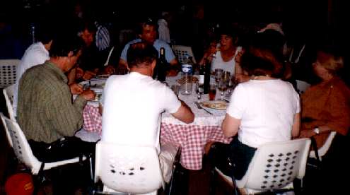 Settling in for the final night of the tour. Left to right: Margaret Perry, Huntley Perry, Simon Wood (red shirt), Gerda de Bruyn (standing), Jack Jacobs.