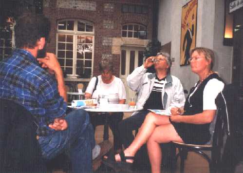 Copious refreshments at the Campanile, Amiens Glisy. The proprietors made us very welcome and indeed joined in the fun.